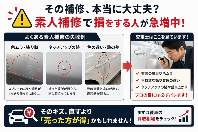 実は素人の補修は査定で5万〜20万円以上マイナスになるケースがあることは知っていますか?