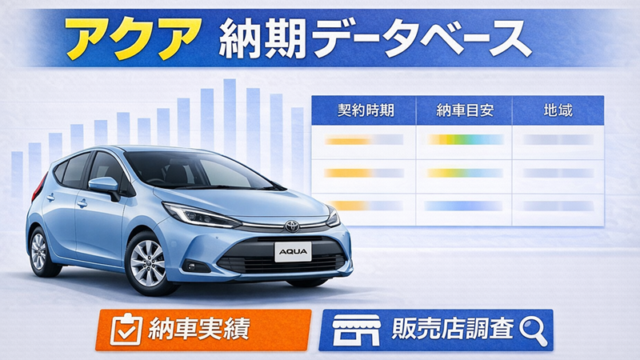 本ページは編集部が収集した納車実績および販売店調査データを整理した「アクアの納期データベース」です。