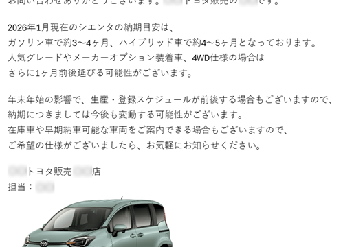 | 5位 | シエンタ | 約2か月〜 | — | 13 |