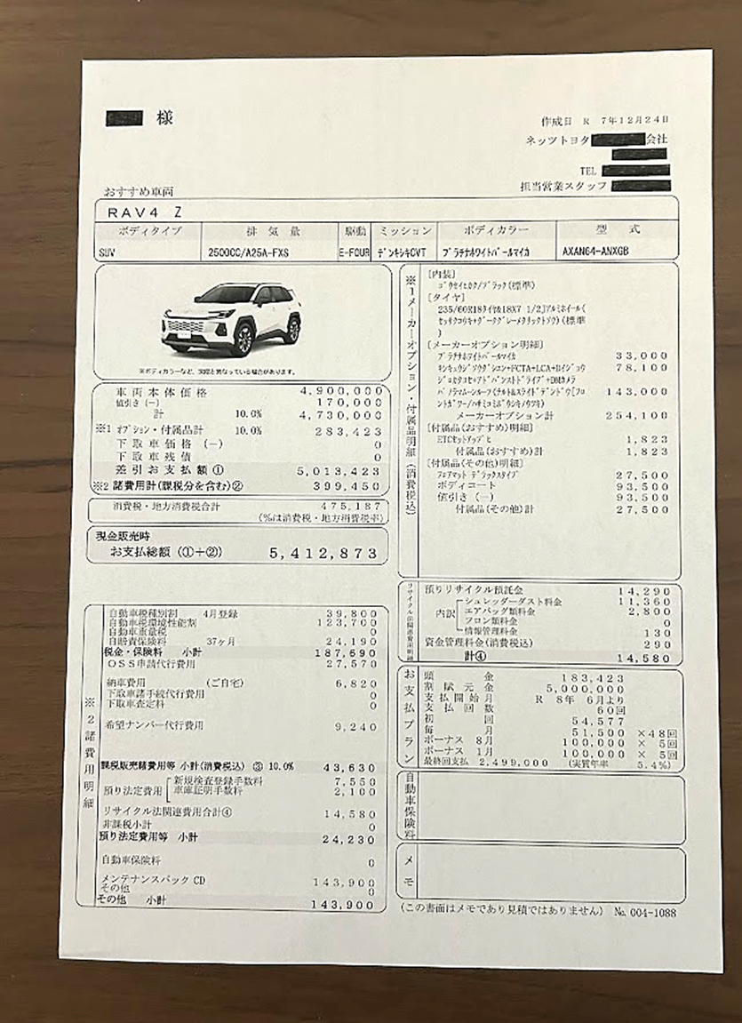 RAV4の値引き後の新車価格はいくら?Z(ハイブリッド)の実例を公開